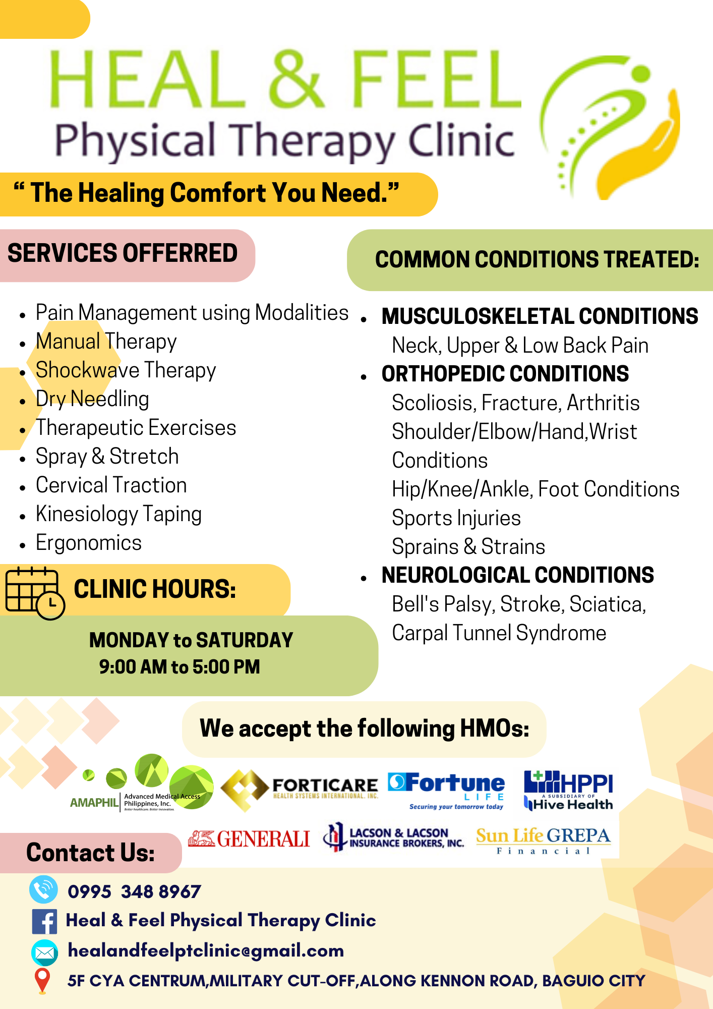 "The Healing Comfort You Need" 🌟 Why Choose Heal & Feel? Compassionate, patient-first care. Clean and comfortable treatment environment. Customized therapy programs. Focus on long-term recovery and prevention. Accessible location within Baguio City.