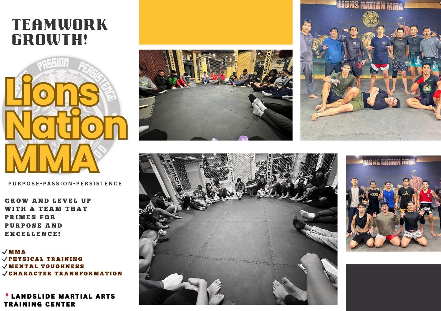 Lions Nation MMA is a mixed martial arts training gym and fight stable based in La Trinidad, Benguet, founded by Filipino MMA champions led by Eduard “Landslide” Folayang and longtime teammates. The facility at Pine Valley Plaza offers combat sports training with areas for MMA scrimmages, grappling, striking, and conditioning, with a focus on holistic personal development and athletic excellence. The team includes notable fighters and coaches and engages in grassroots programs to train and mentor aspiring martial artists in the region.